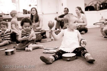 Every week in our music classes, babies, toddlers, pre-schoolers, and the grown-ups who love them come together to play together musically. Little ones love playing along in class, and caregivers love being a part of their children's growth into confident music-makers!